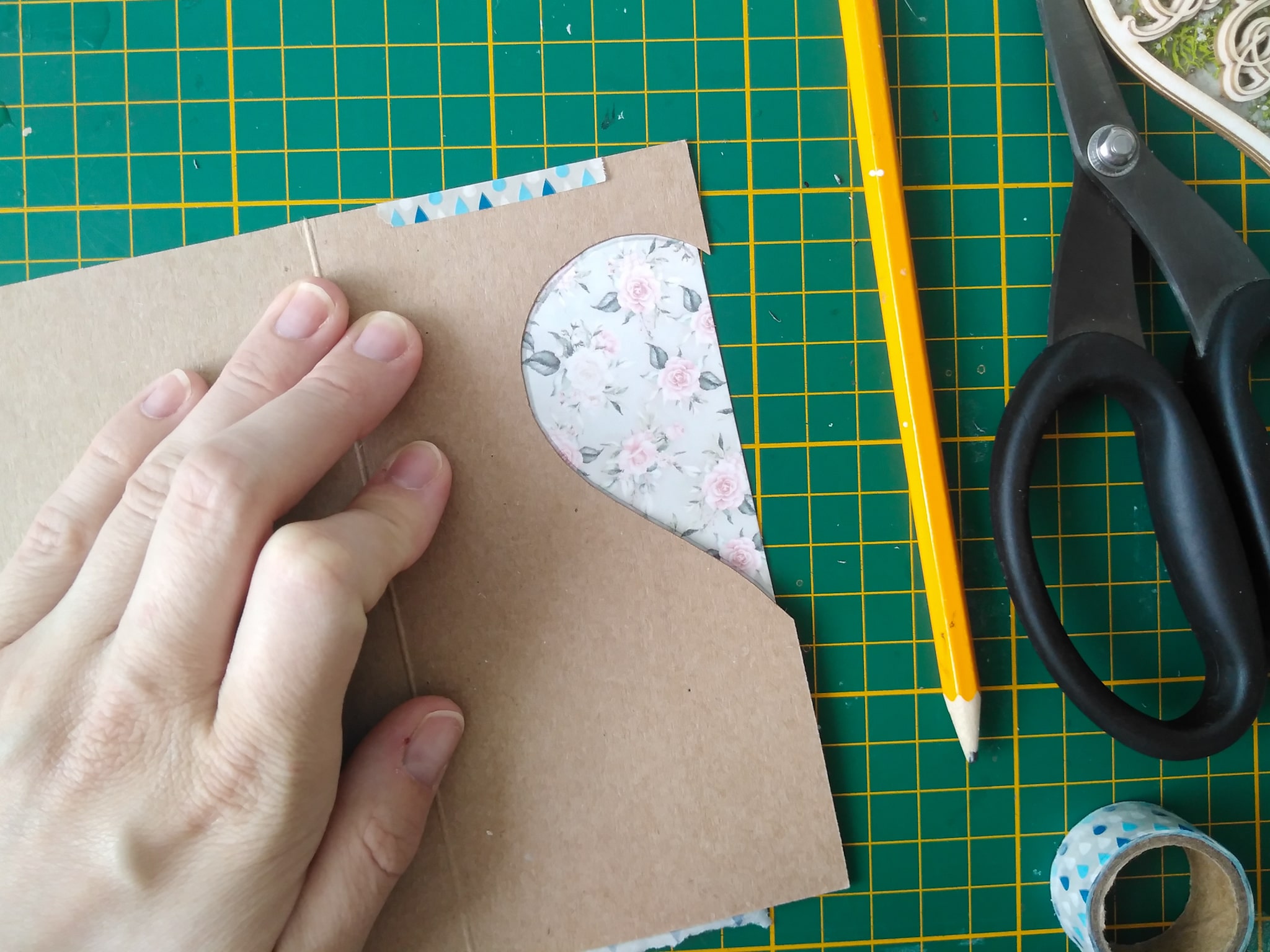 Bazę oklejam arkuszem z kolekcji "Wiosenny czar" (numer 8) to takie bardzo ładne jasne deski. Na początek wycinam dwa prostokąty 14,5x7 cm - będą do oklejenia skrzydełek bazy. Przykładam do naszej bazy i doklejamy za pomocą taśmy papierowej, aby nic się nie przesunęło.